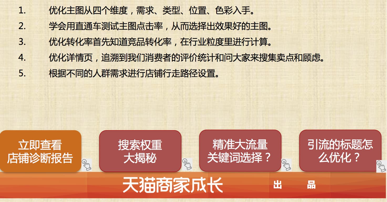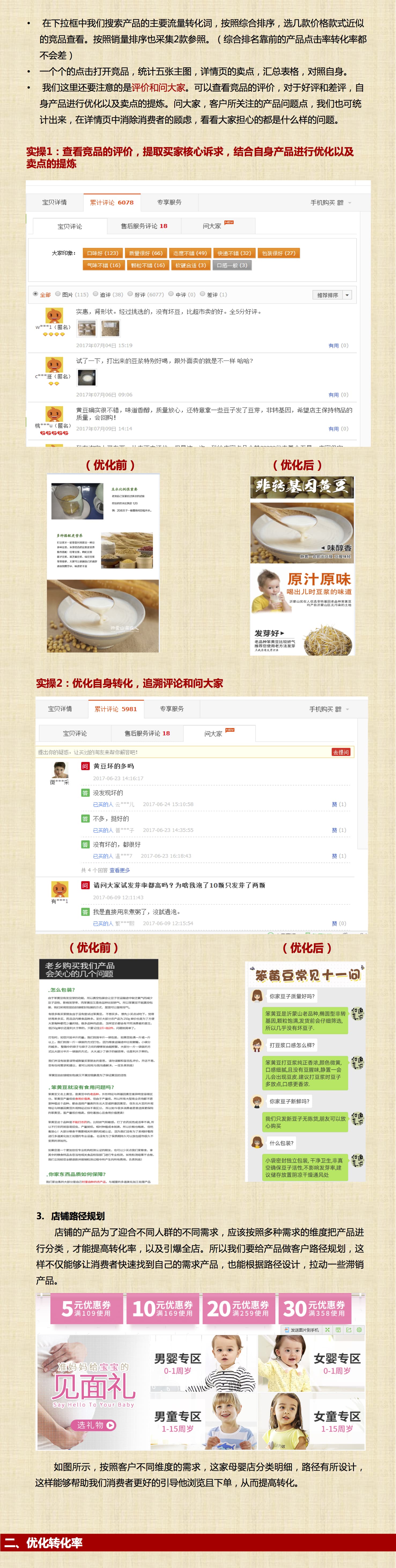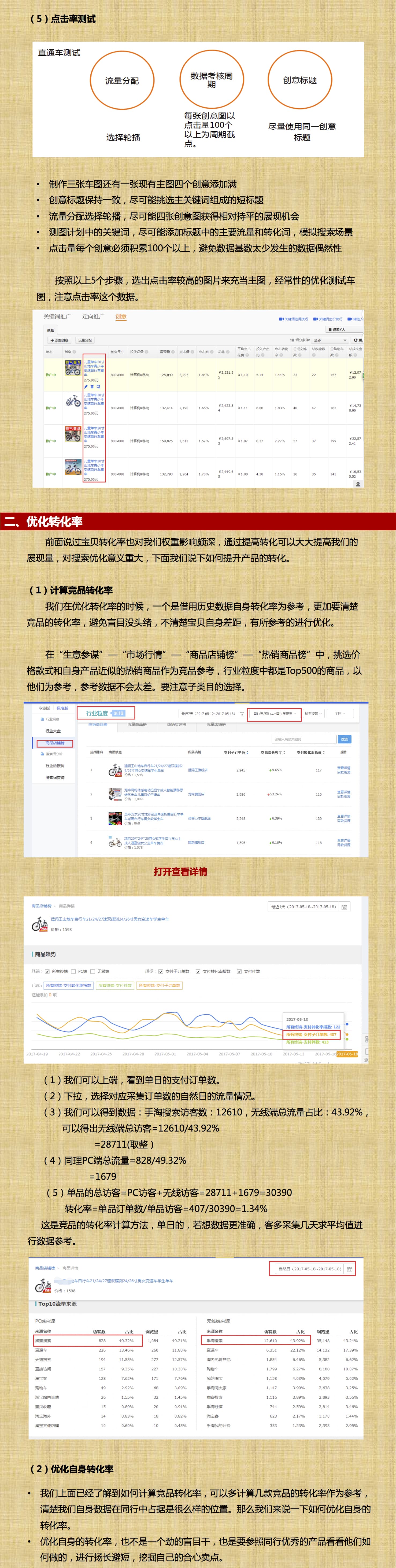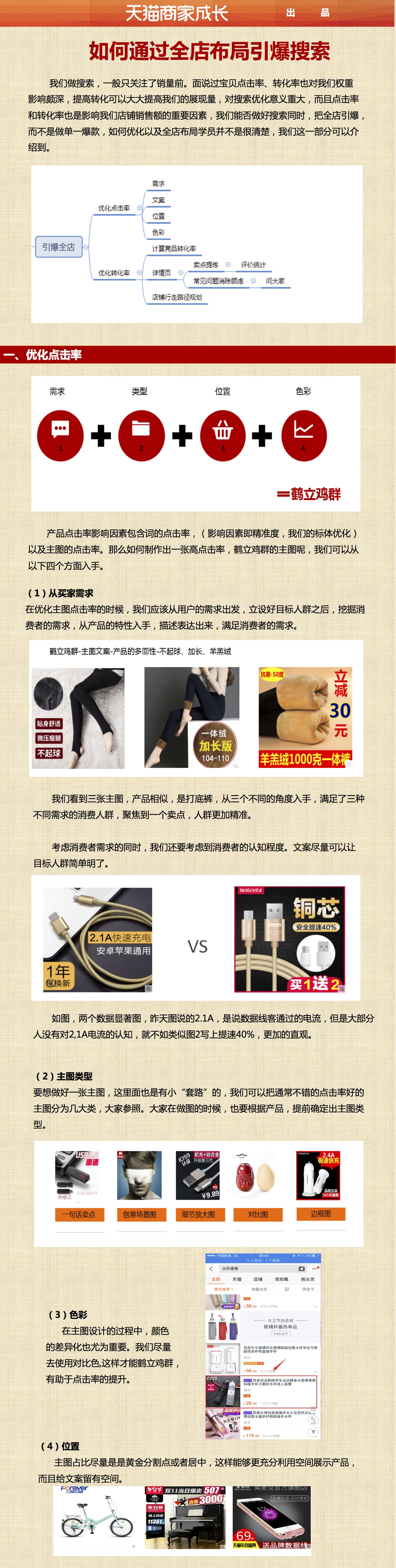 我们做搜索,一般只关注了销量前。面说过宝贝点击率、转化率也对我们权重影响颇深,提高转化可以大大提高我们的展现量,对搜索优化意义重大,而且点击率和转化率也是影响我们店铺销售额的重要因素,我们能否做好搜索同时,把全店引爆,而不是做单一爆款,如何优化以及全店布局学员并不是很清楚,我们这一部分可以介绍到。