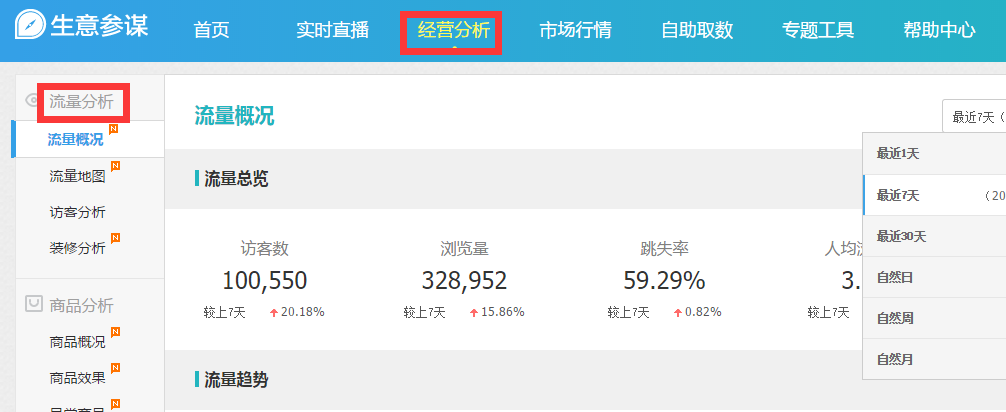 - 1)经营分析>流量分析