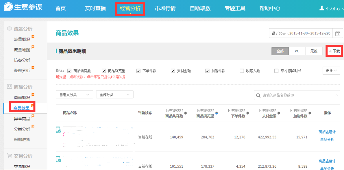 - 1)经营分析>商品分析