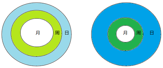 绿色系(浅绿和深绿)表示的是周累加访客数与月去重访客数的差值,即重复人数;蓝色系(浅蓝和深蓝)表示的是日累加访客数与周累加访客数的差值,即重复人数
