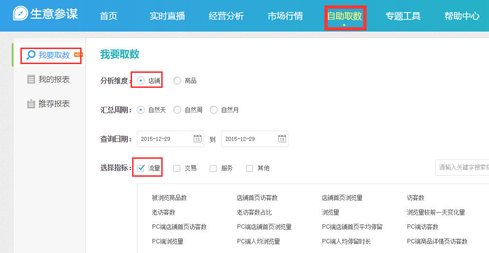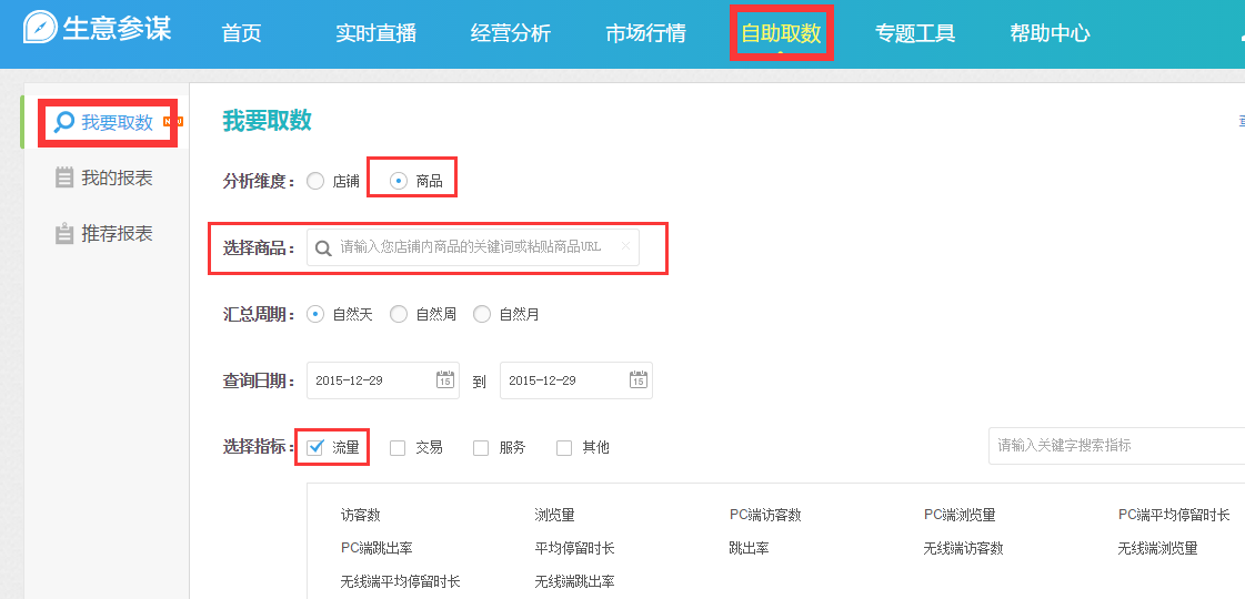 - 2)自助取数>我要取数